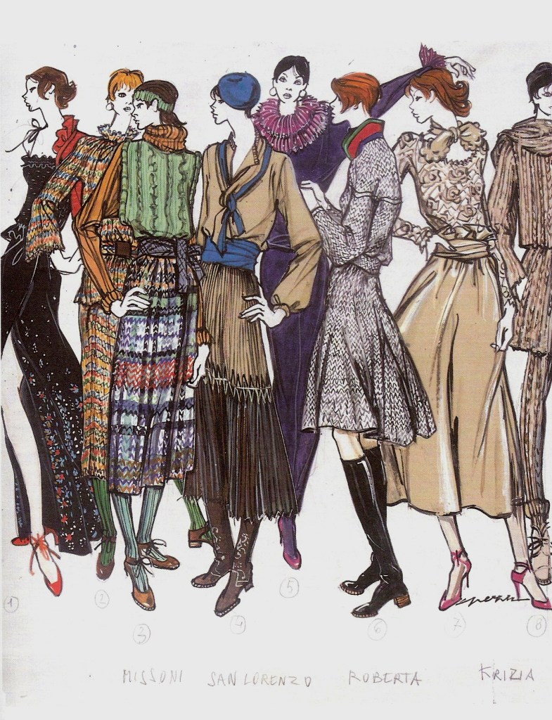 Il 12 febbraio del 1951, a Firenze, nel salone di Villa Torrigiani, nasce la moda italiana. A sfilare sono tredici firme: Simonetta, Fabiani, le sorelle Fontana, Schubert, Carosa, Marucelli, Veneziani, Noberasco, Vanna, Pucci, Avorio, Bertoli e la Tessitrice dell’Isola Clarette Galloni. Testimone dell’evento è ancora lei, Maria Pezzi, che scrisse. “Non c’era passerella, ci sarebbe stata nell’estate del 1952 quando le sfilate traslocarono a Palazzo Pitti, nella Sala Bianca: una novità assoluta nel salone di casa Giorgini. La moda italiana nasceva a livello di parquet, era così anche negli atelier di Parigi, in un breve tracciato fra sedie e poltrone. C’era un pianoforte, c’era un tapeur. La biblioteca serviva da spogliatoio per le indossatrici” ‘Prima degli abiti da giorno’, ha scritto Roberta Orsi Landini, studiosa della moda, ‘sfilarono i modelli boutique e quelli per il tempo libero e lo sport. Era questo un tipo di abiti che Parigi non presentava, che non aveva riscontro nelle immagini sofisticate della moda francese. I capi erano imprevisti, giovani, freschi, colorati. La qualità sorprendente. I prezzi incredibilmente interessanti. Fu questo il passepartout della nascente moda italiana.’ Il tempo era maturo. Pitti cominciò a insidiare la supremazia di Parigi. Come detto, nel 1952 le sfilate fiorentine avvennero nella Sala Bianca di Palazzo Pitti e fu l’inizio di un successo inarrestabile. Nuovi nomi si affermarono grazie alle sfilate fiorentine: Roberto Cappucci, e più tardi negli anni sessanta, Krizia, Mila Schon, Valentino e Ottavio Missoni. Valentino, Mariuccia Mandelli, in arte Krizia, e Ottavio e Rosita Missoni, furono vere e proprie “scoperte” della Pezzi. Quest’ultimi, nel 1973, a Dallas, ricevettero il Neiman Marcus Award, l’Oscar della Moda.